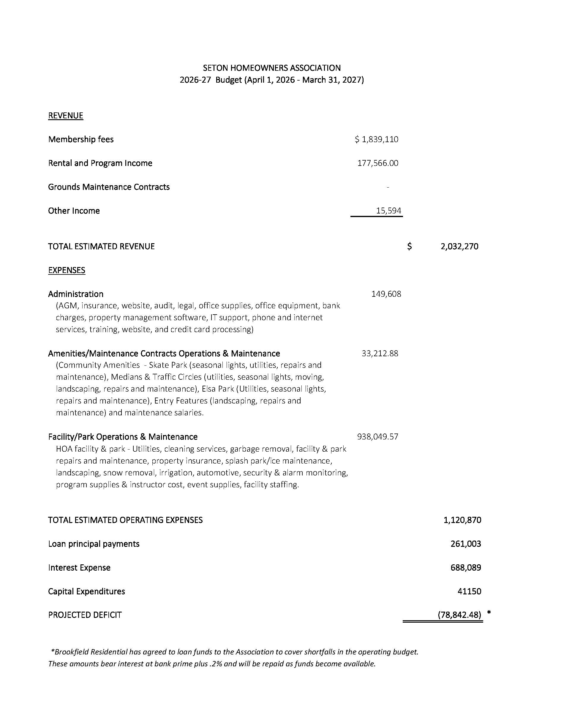 Although Seton HOA annual encumbrance fees are due on the first day of the fiscal year (April 1, 2026), residents are provided with a 30-day grace period to settle their account. Accounts paid on or after May 1, 2026, will be subject to interest charges of prime plus 5% per annum and any applicable collection costs.